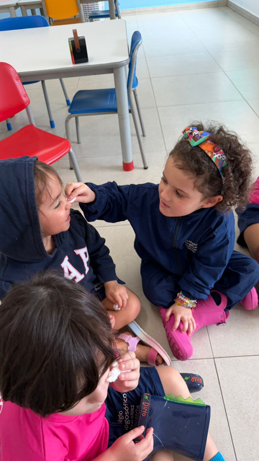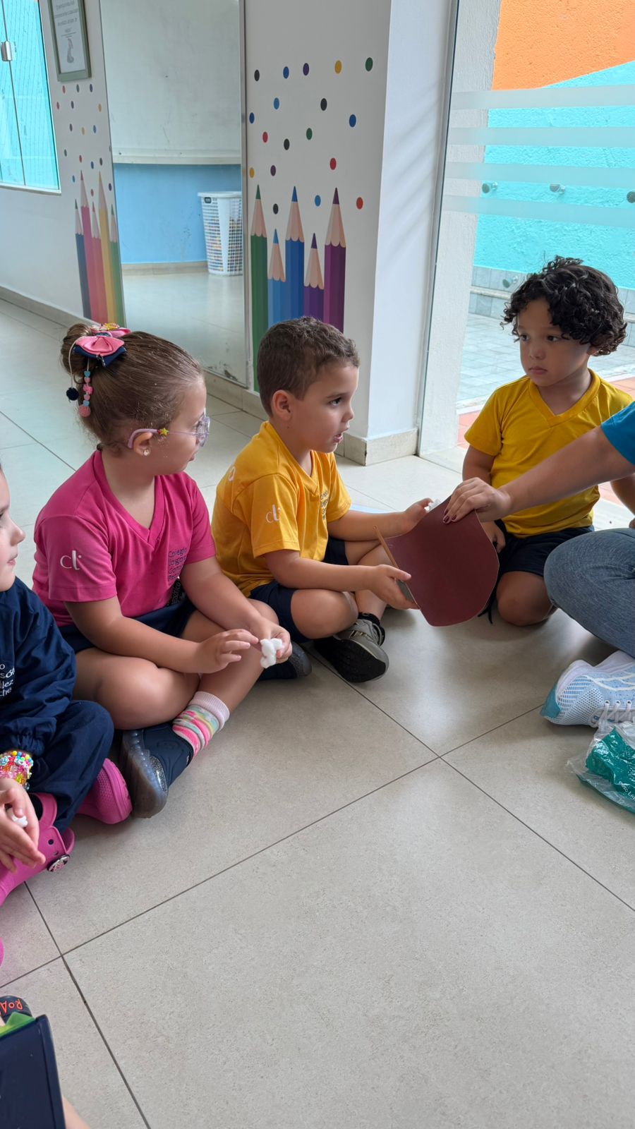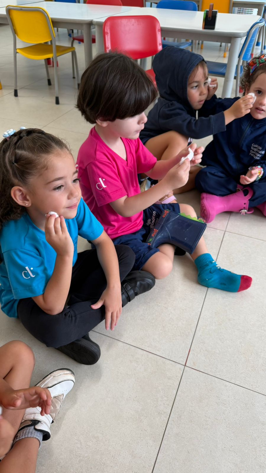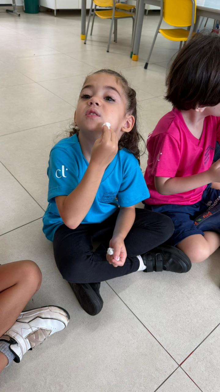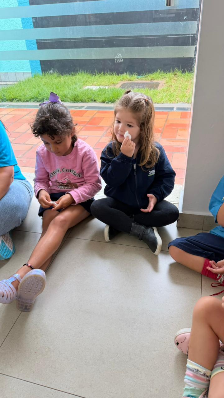 De forma lúdica e sensorial, a professora Camila utilizou uma analogia simples e significativa: o algodão, representando a suavidade, e a lixa, simbolizando a brusquidão. As crianças foram convidadas a sentir as diferentes texturas e perceber as sensações que cada material provocava.